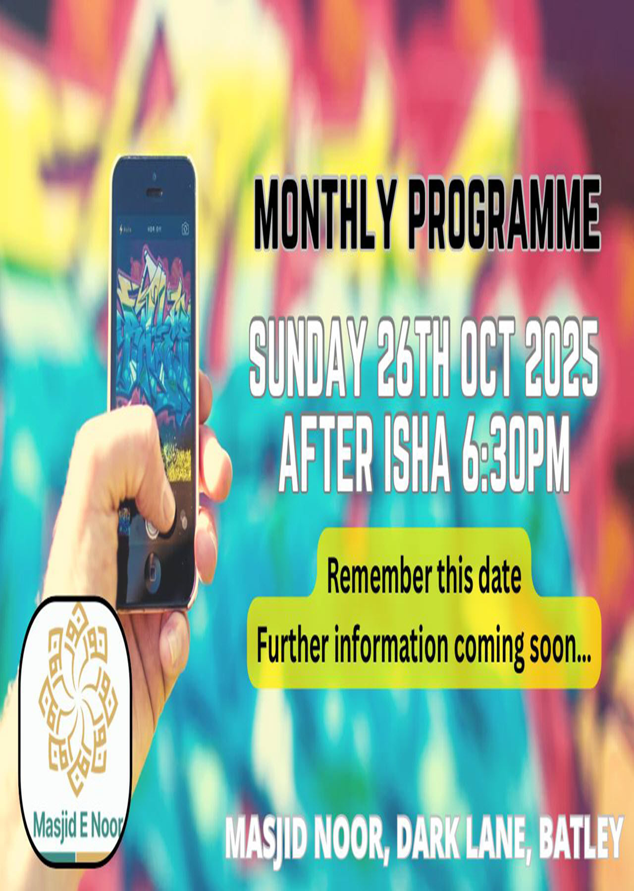 BROTHERS EVENTS All brothers’ events, past and present can be accessed through the Masjid’s eMasjid channel. https://emasjidlive.co.uk/masjidnoorbatley