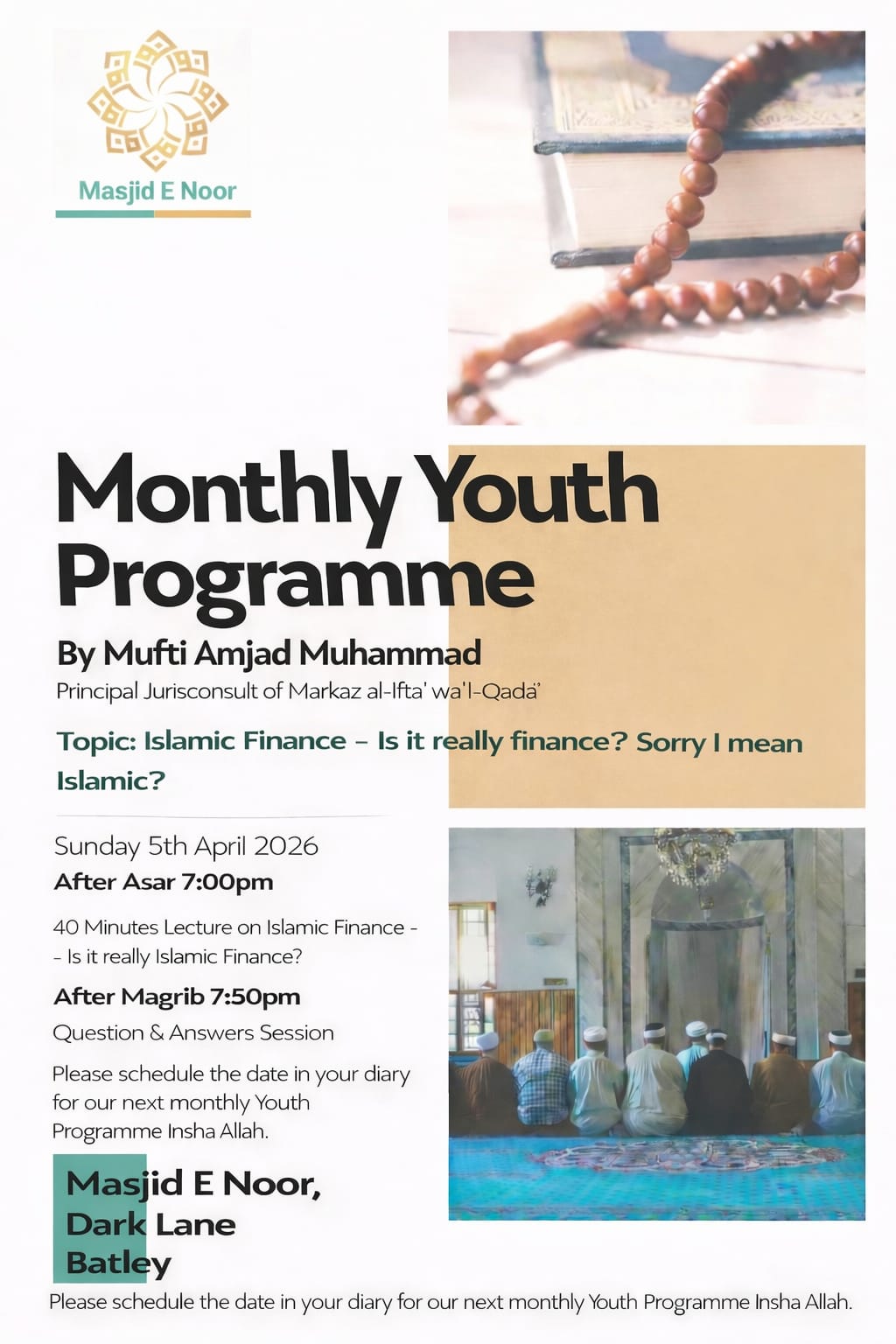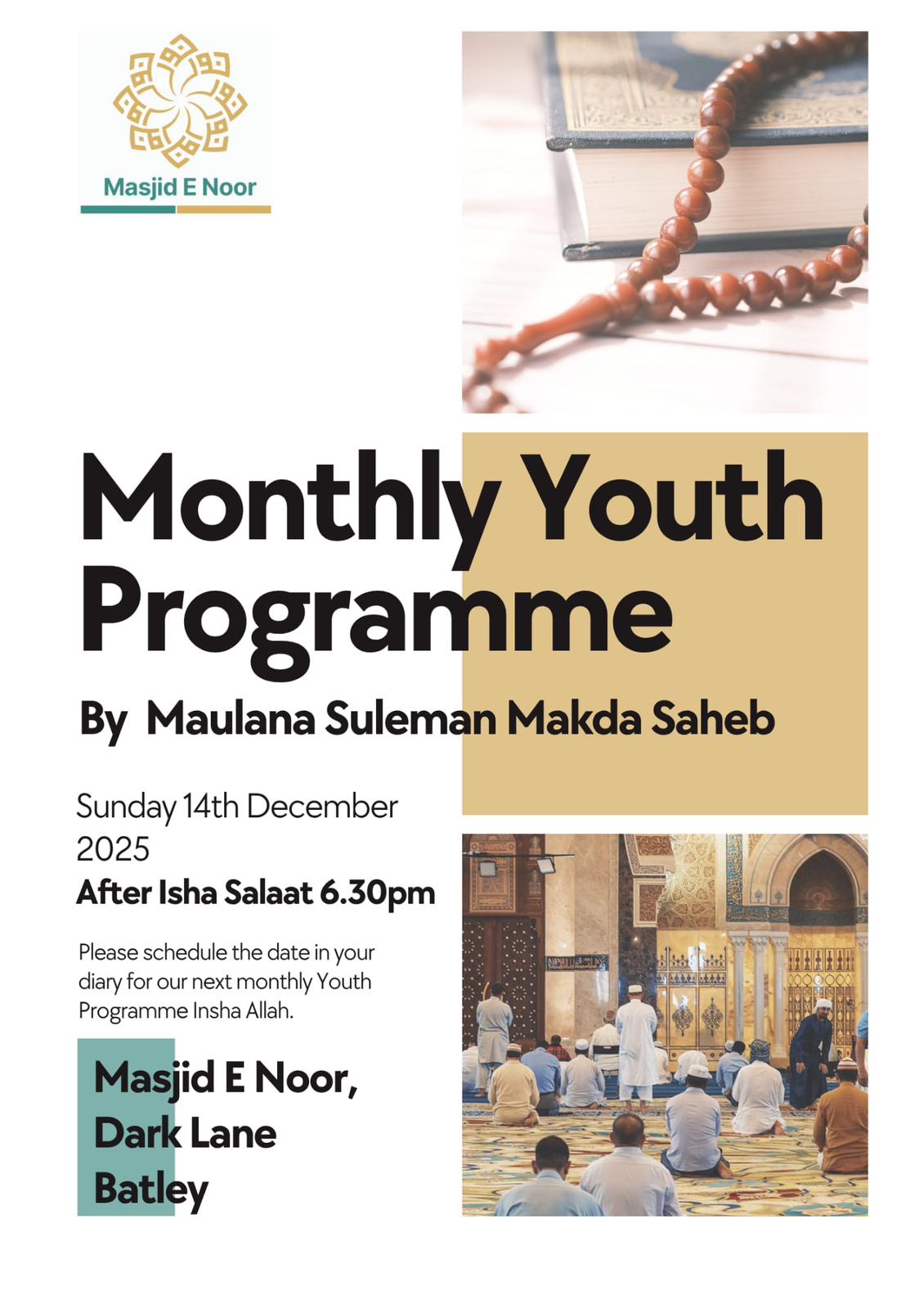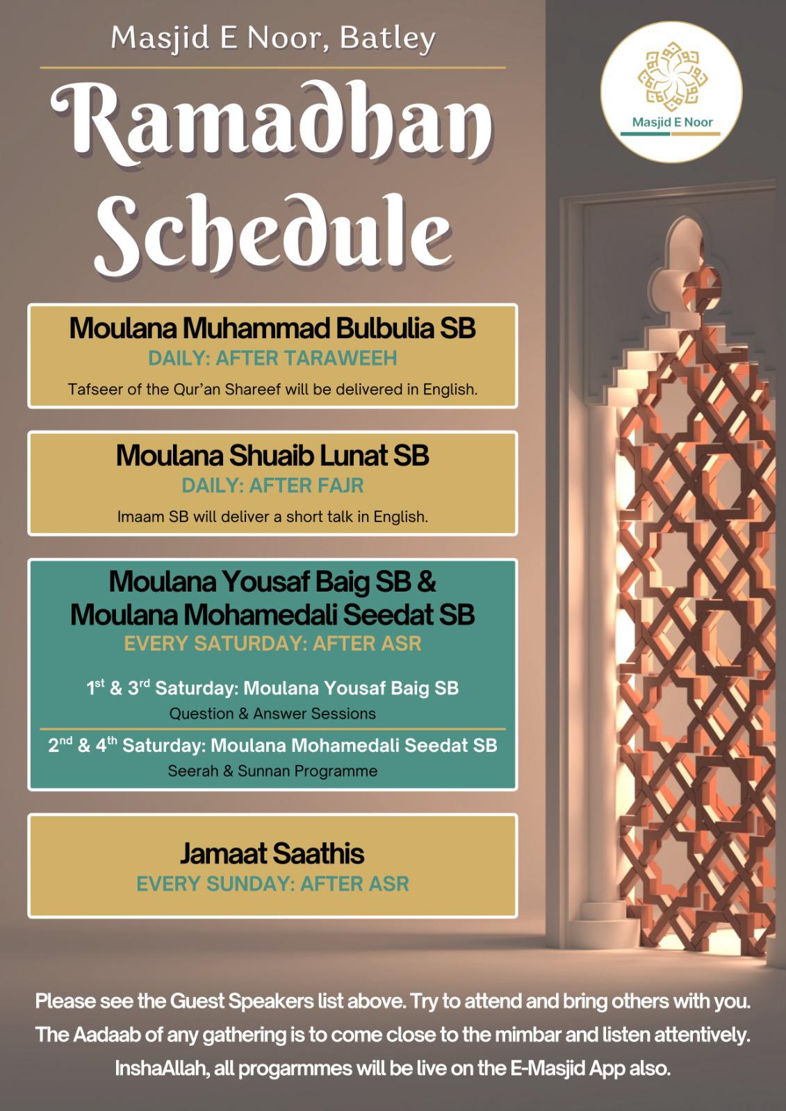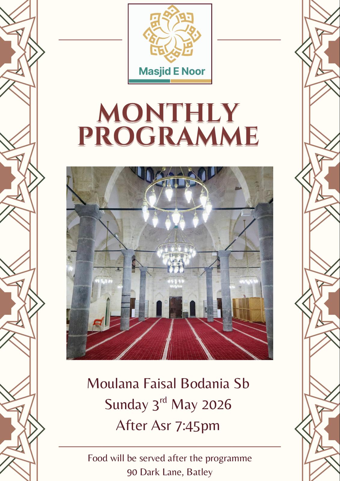 BROTHERS EVENTS All brothers’ events, past and present can be accessed through the Masjid’s eMasjid channel. https://emasjidlive.co.uk/masjidnoorbatley
